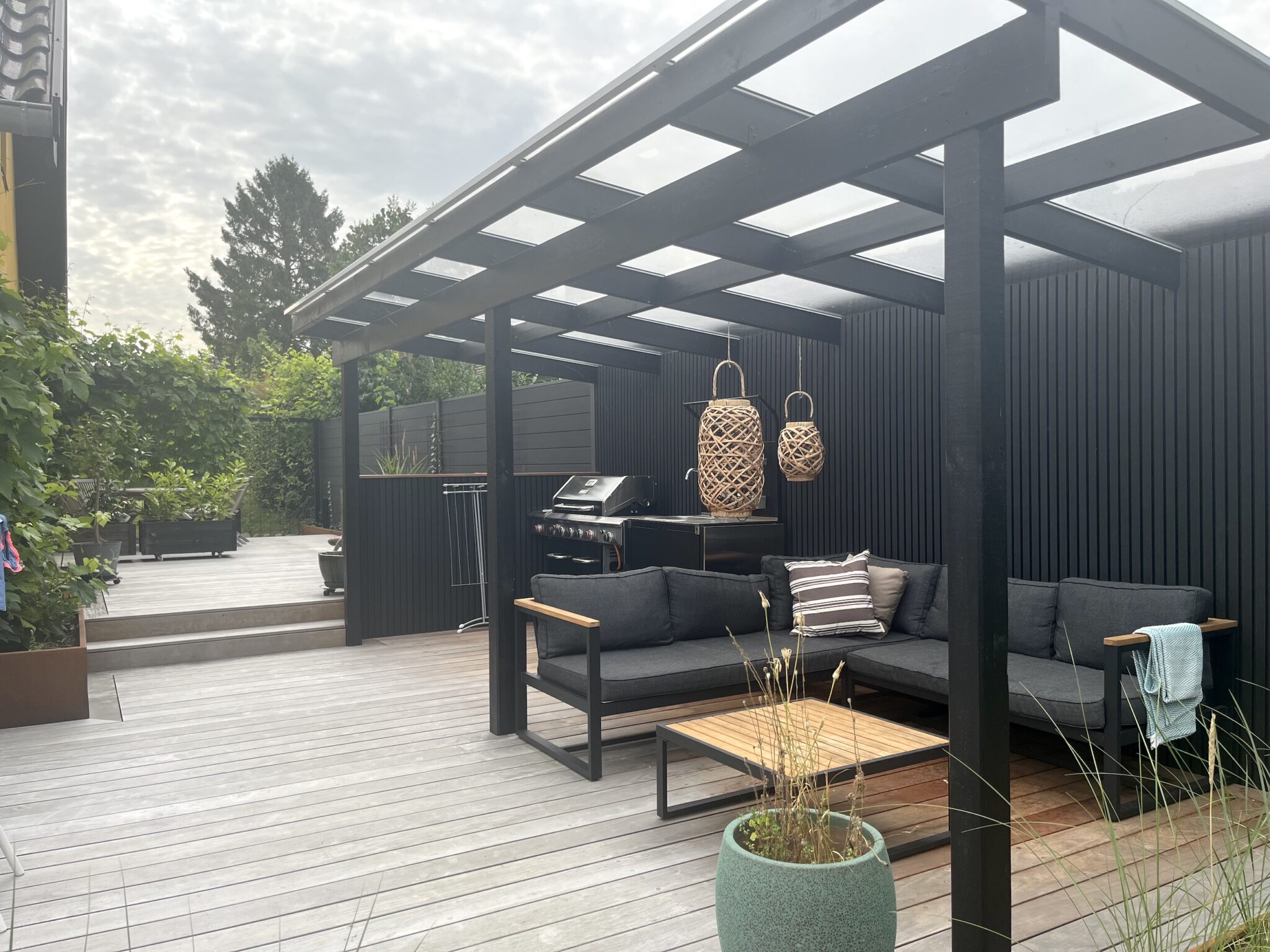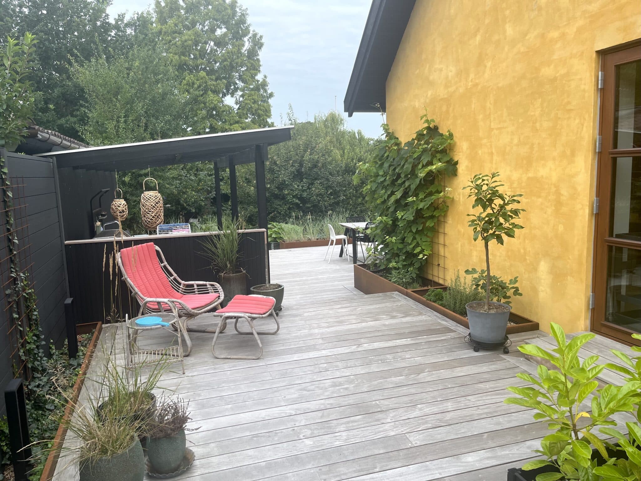 I Bagsværd har LARKi Landskab hjulpet familen med at skabe bedre kontakt mellem hus og have så udsigten til den private sø udnyttes fuldt ud. Løsningen lå en et sammenhængende trædæk i flere niveauer indrettet omhyggeligt med fokus på hygge, æstetik og funktion i dagligdagen. På den måde fungerer trædækket som en forlængelse af husets ud i haven og giver et helt nyt flow i og omkring huset.